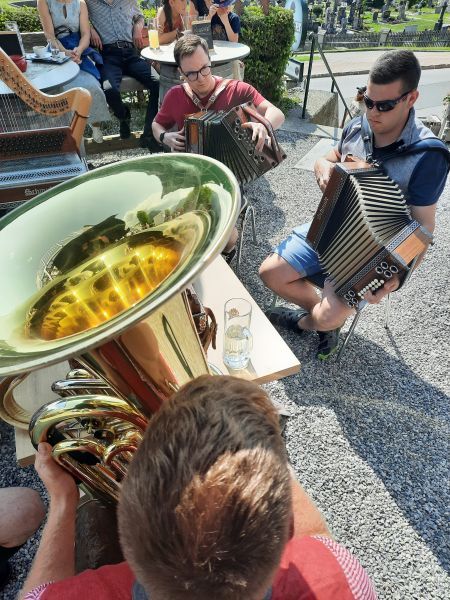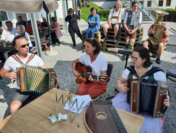 Den Abschluss bildete bei traumhaftem Wetter ein von Volksmusiklehrerin Doris Spanner geleiteter Sänger- und Musikantenstammtisch auf der Terrasse des Mariazeller Stadtheurigen.